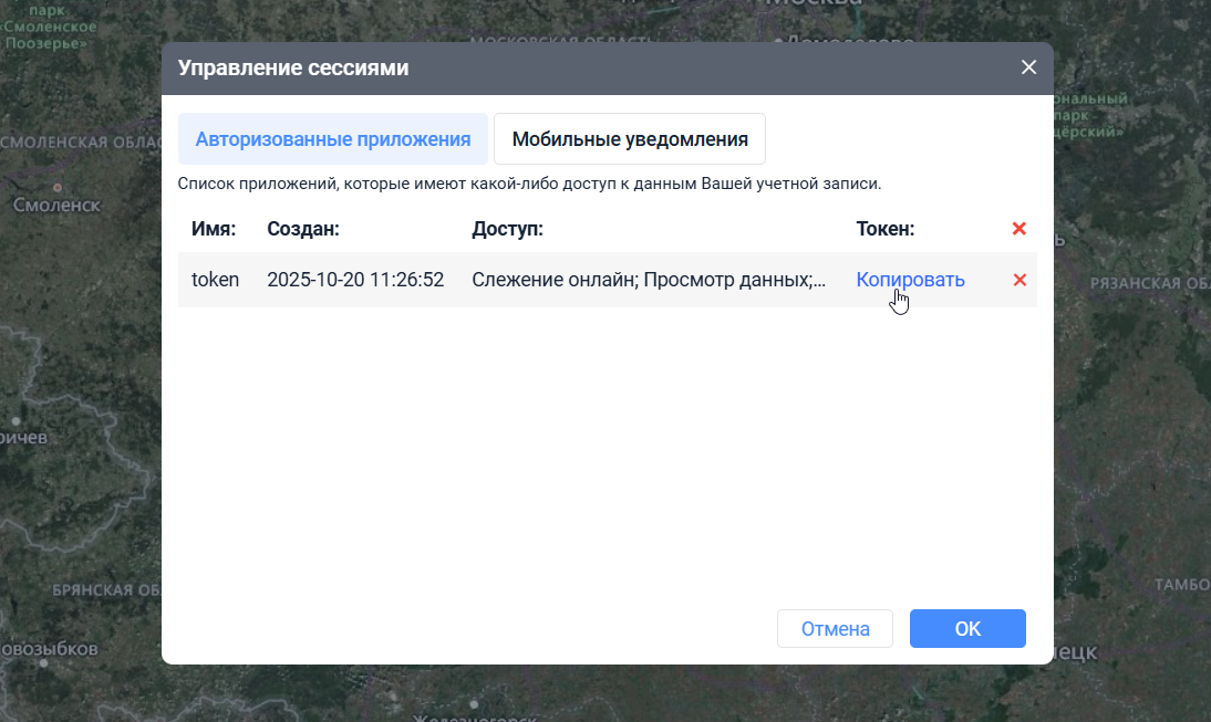 Токен также будет отображаться в "Управление сессиями" в самой системе мониторинга: